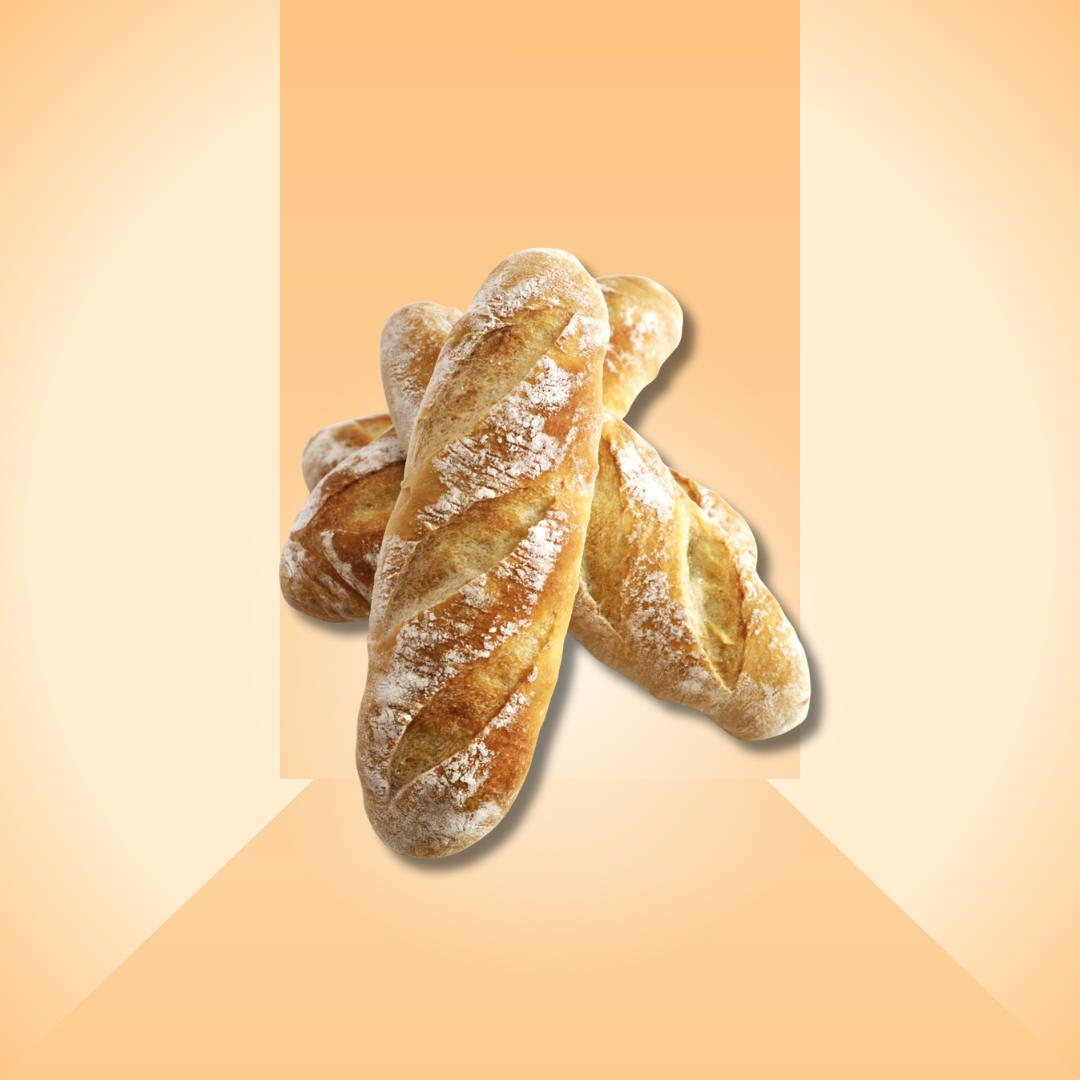 Baguette có hình dáng dài, thon gọn, bề mặt được rạch vân truyền thống và phủ lớp bột áo mỏng tạo cảm giác thủ công đặc trưng. Khi nướng, bánh đạt độ giòn hoàn hảo bên ngoài nhưng vẫn giữ được phần ruột mềm, nhẹ và dai vừa phải bên trong.