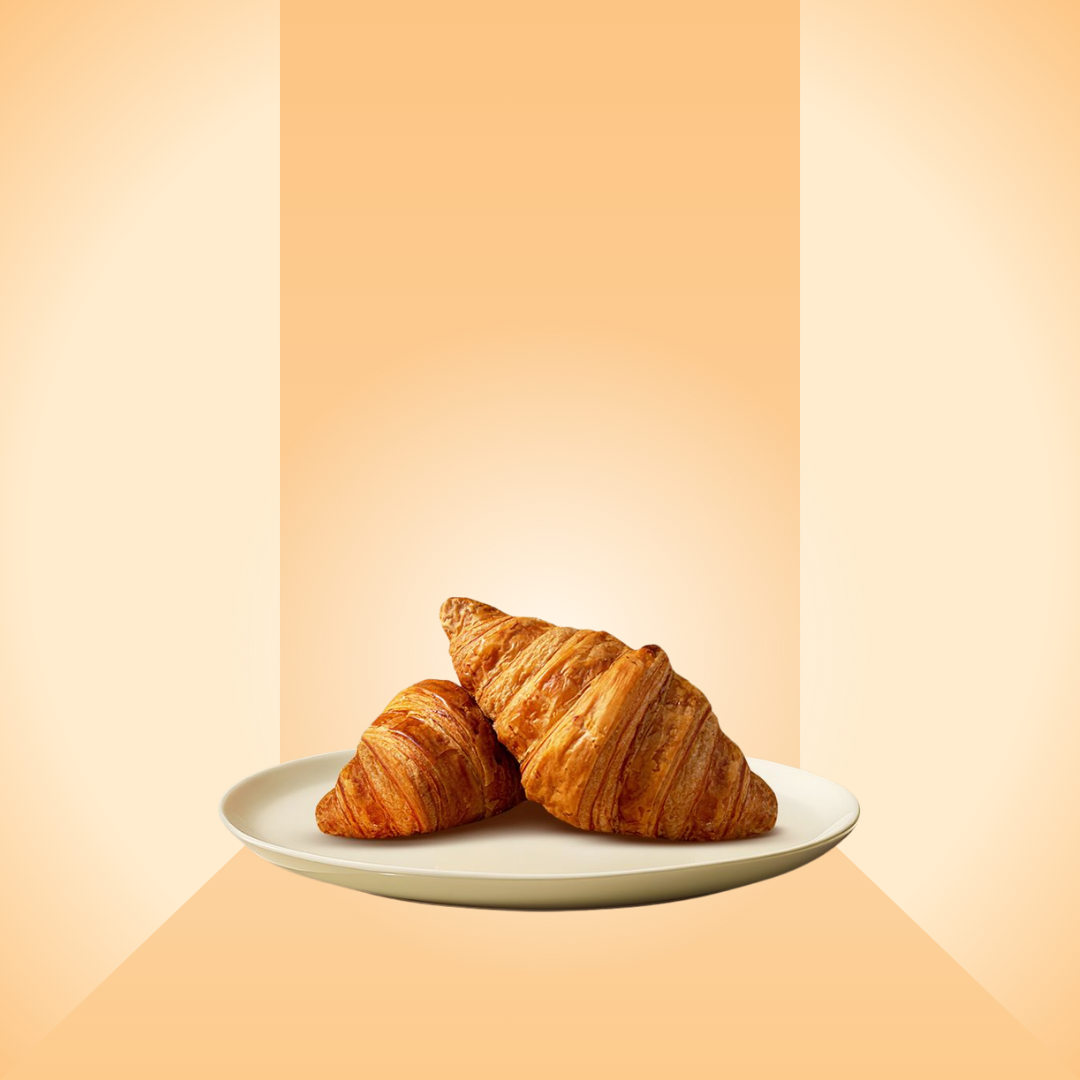 Croissant là dòng bánh mì bơ trứ danh của Pháp, nổi bật với hình dáng sừng bò đặc trưng và cấu trúc nhiều lớp mỏng xếp chồng. Bánh được làm từ bột mì chất lượng cao, bơ thơm béo và men tự nhiên, trải qua quá trình cán gấp công phu để tạo nên lớp vỏ vàng ruộm, giòn nhẹ bên ngoài nhưng mềm xốp, ẩm mịn bên trong.